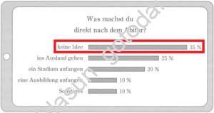 Jan: Was? 34 weiß noch nicht, was sie nach der Schulzeit machen sollen! Ich dachte, ich bin der Einzige, der nicht sofort an die Uni gehen will.